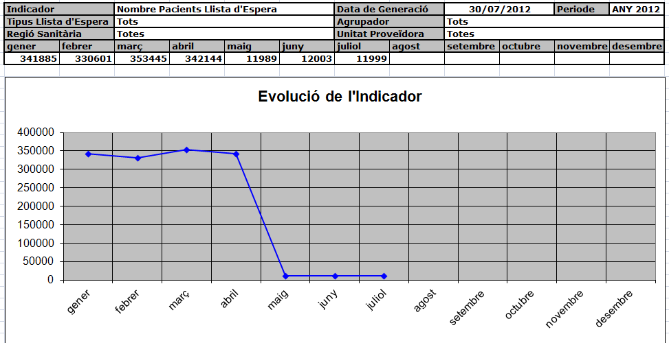 · Nombre Pacients Llista d'Espera: Comptabilitza el nombre total de pacients del CatSalut en situació d'Alta (incloent les baixes temporals).